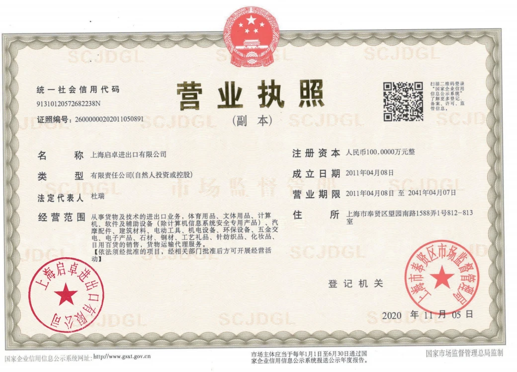 Registered address : Room 812-813, No. 1, Lane 1588, Wangyuan South Road Shanghai China